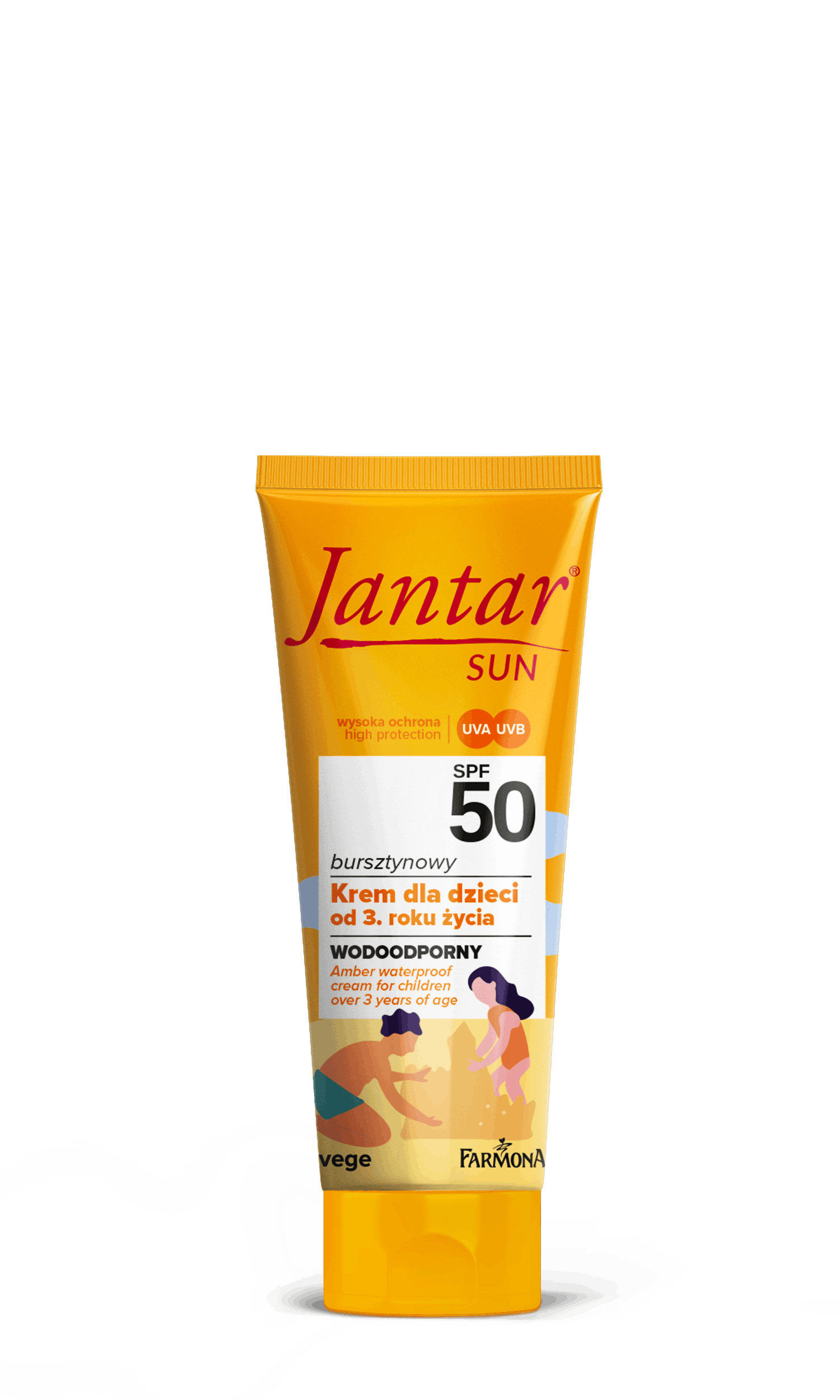 Amber Waterproof Cream For Children Over 3 Years SPF50 er en solcreme med høj beskyttelse fra Jantar, specielt udviklet til at beskytte børns sarte hud mod solens skadelige stråler. Denne solcreme giver bredspektret beskyttelse, så dit barns hud er beskyt